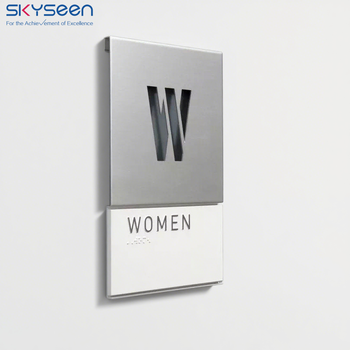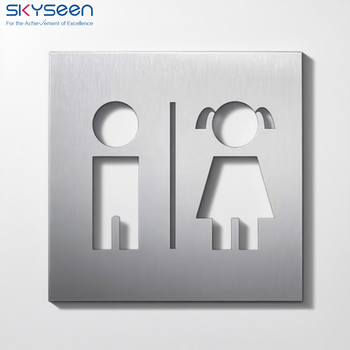 SKYSEEN Custom Dark Gray Stainless Steel Toilet Sign Simple Elegant Assembly Hall for Hotels Shopping Malls Auditoriums