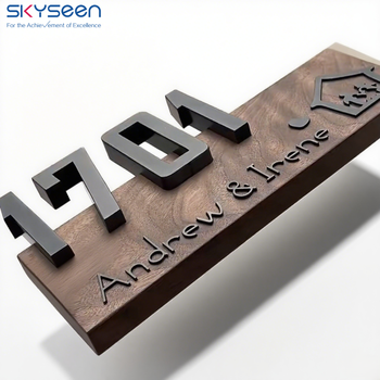 SKYSEEN Customized High Quality 3D Metal Letters for House Numbers Wooden Base Plate Simple yet Sophisticated Ins Style Homedoor